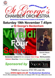 Vivaldi Four Seasons by St George’s Chamber Orchestra – 7.45pm Sat 19 Nov 2016, St George’s Church Beckenham