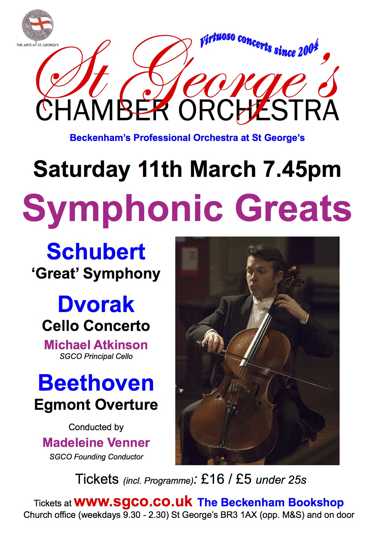 SGCO Symphonic Greats– 7.45pm Sat 11 Mar 2017, St George’s Church
