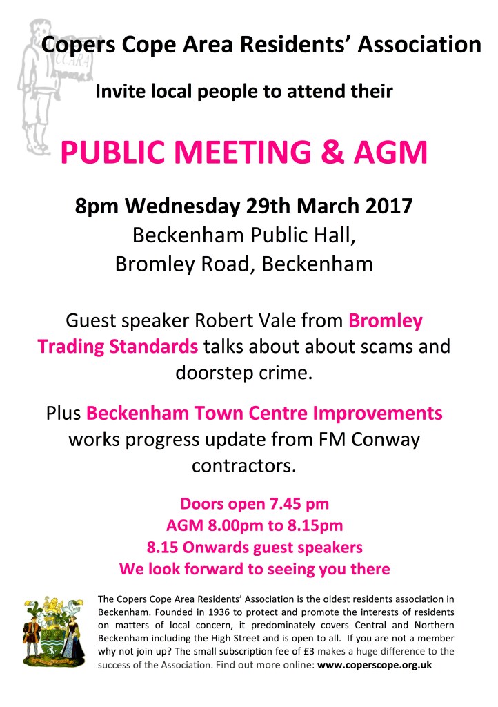 Public meeting tomorrow night – Bromley Trading Standards Talk and Town Centre Improvement Update – 8pm Weds 29 March 2017, Beckenham Public Halls