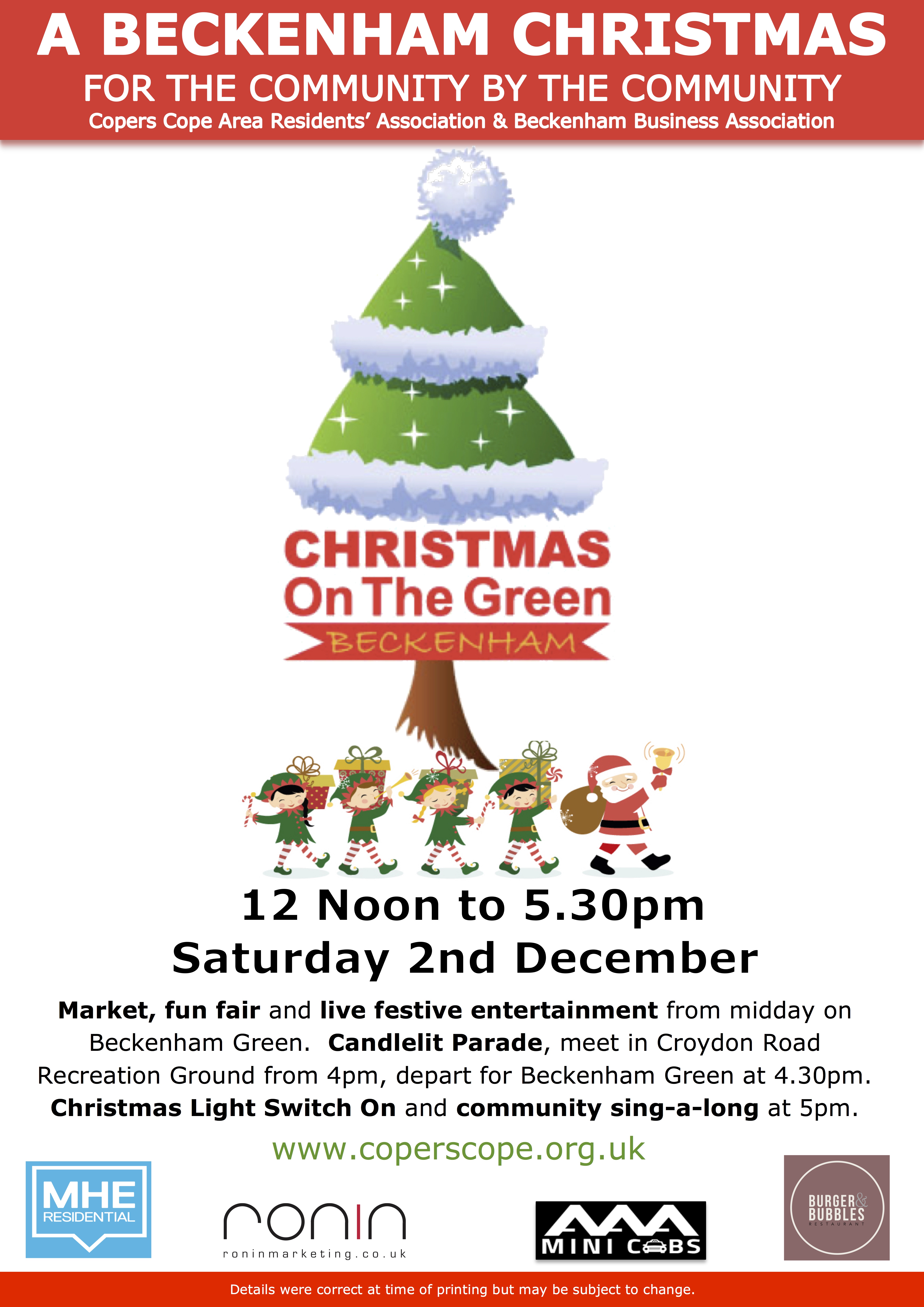 Back by popular demand is Beckenham’s Candlelit Parade. This year organised by the Beckenham Business Association. The parade starts at Croydon Road Recreation Ground (main entrance on Croydon Road). Meet at 4pm for a 4.30pm departure down the High Street to Beckenham Green. Join in the parade for beautiful lanterns, Father Christmas and Christmas Carols .