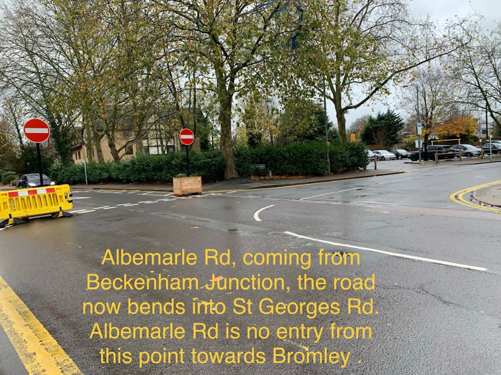 Our Association visited the junction of Albemarle Road and St Georges Road this morning and at 9am met with ward Councillor Stephen Wells, project officers from Bromley Council and a traffic engineer. Our first impression was of significantly increased congestion on Albemarle Road, which died down at 9.30 when the peak was over. We were told that traffic was running much better than the day before, which is good news.