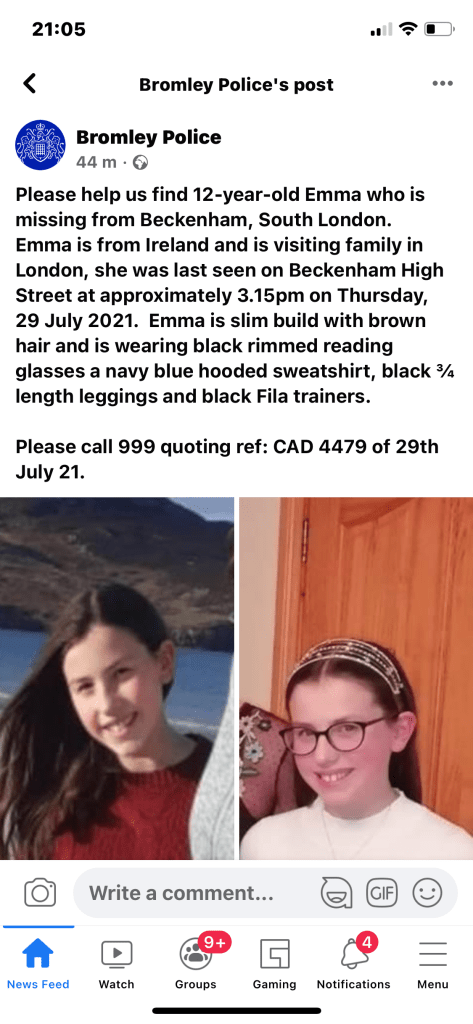 Police Newsflash: missing child Beckenham (29 July 2021)