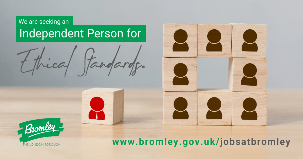 Bromley Council are looking to appoint one or more “Independent Person(s)” to provide an impartial, balanced and informed view on complaints about the behaviour of councillors and contribute to the oversight of ethical standards in local government in Bromley. Applications must be made by 17 September 2021.