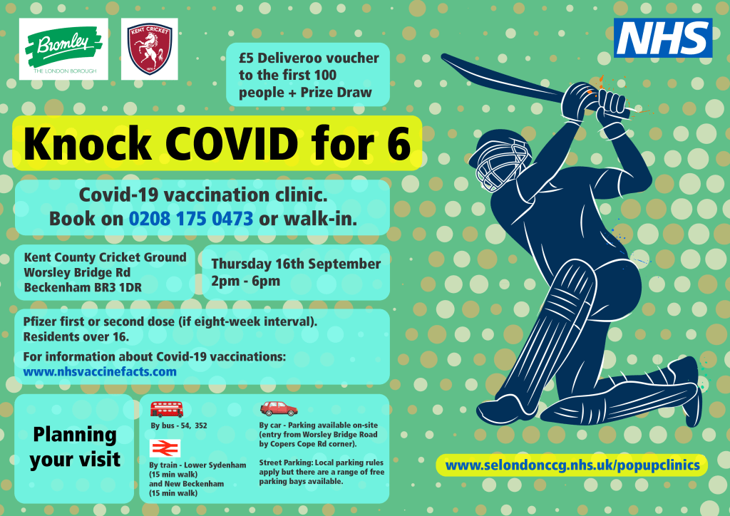 Kent County Cricket Club – pop up COVID clinic 2-6pm 16 September 2021