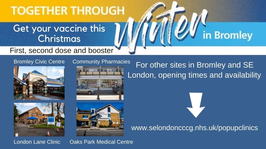 - Bromley Civic Centre – Book on NBS or walk-in (last admission at 5.30pm)