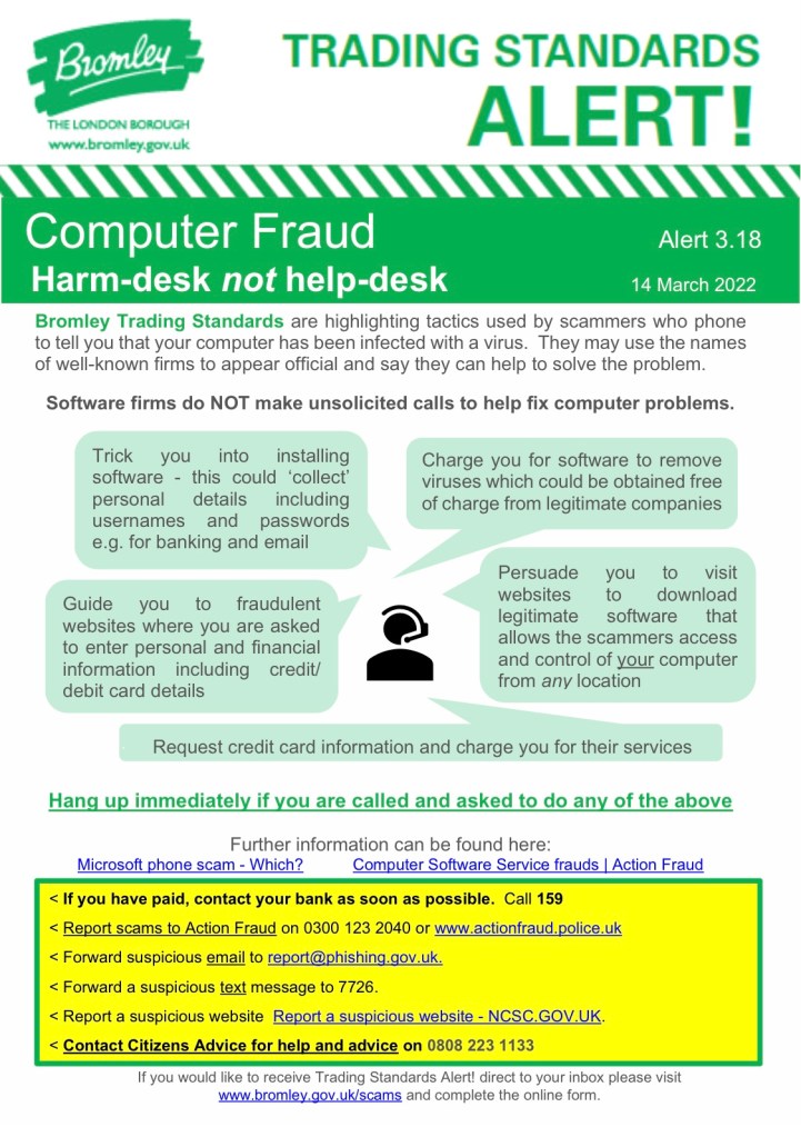 Bromley Trading Standards: Software firms do NOT make unsolicited calls to help fix computer problems