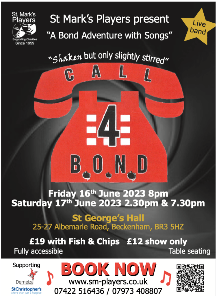 St Marks Players present ‘Call 4 Bond’ – Fri 16 and Sat 17 June 2023, St George’s Hall Beckenham