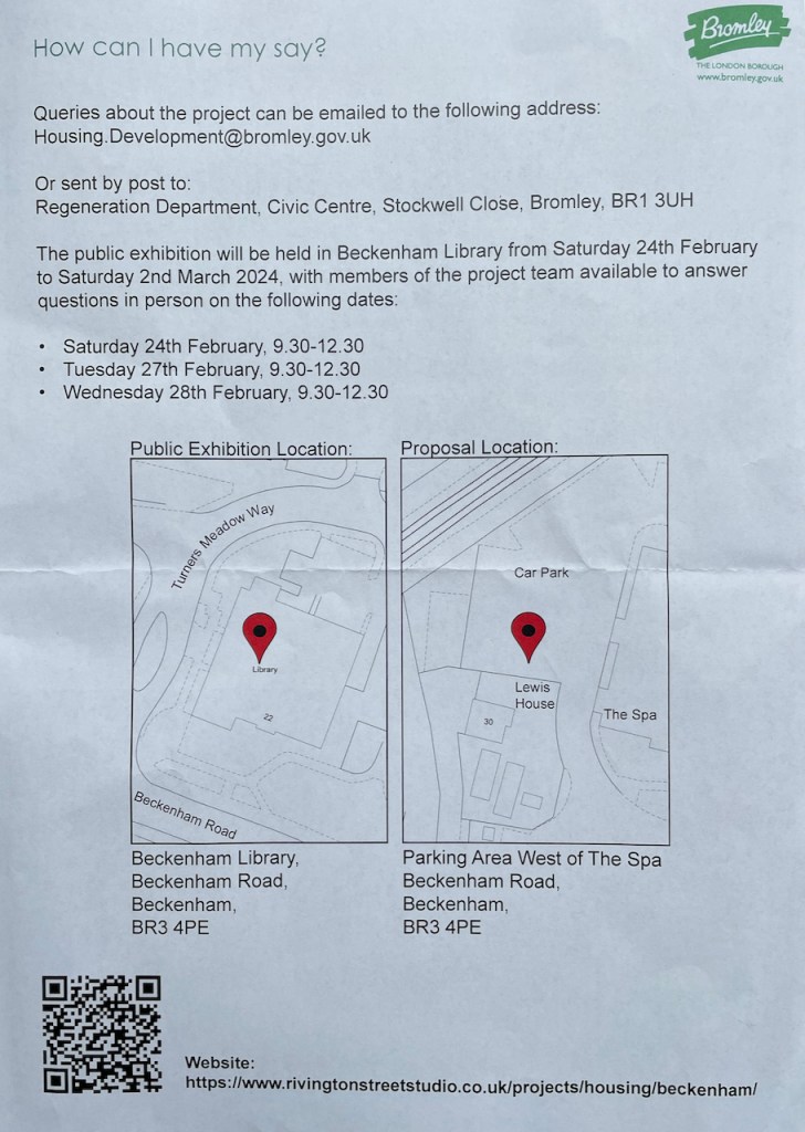 A public exhibition will be held at Beckenham Library from Saturday 24th February until Saturday 2nd March, where you can view the proposals.