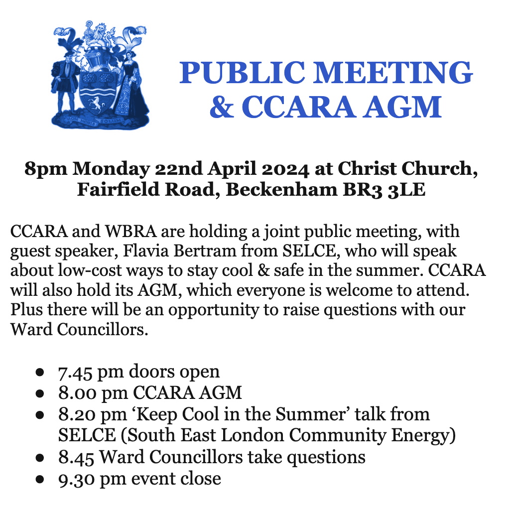 CCARA AGM, ‘Keep Cool in the Summer!’ talk, & public meeting – 8pm Monday 22nd April 2024 at Christ Church