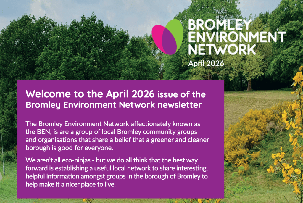 CCARA is a member of Bromley Environment Network (BEN), a broad group of local groups and organisations with an interest in environmental issues. Follow the link below to see the BEN newsletter for April 2026.