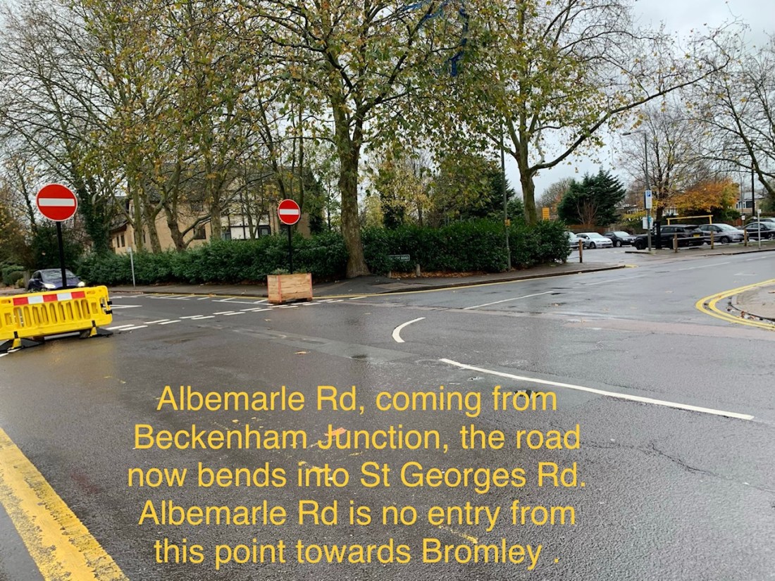 The Council propose to make Albemarle Road two-way between Beckenham Junction and Westgate Road. This will mean the sharp turn in the road that was installed to direct Bromley Bound traffic off Albemarle Rd and down St George’s Road, past the Harris Beckenham Green School, will be removed and the junction returned to its original configuration.