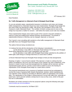 Our Association raised with the Council that the new cycleway and the closure of Westgate Rd Bridge to road users northbound did not link up with the long-proposed TfL cycle way at Lower Sydenham planned to go along Worsley Bridge Rd. It appeared that the Council had not considered the linkages between the 2 schemes in designing Albemarle Rd. Cyclists travelling from Bromley from Albemarle Rd to Lower Sydenham would either have to dismount and push their bike over Westgate Rd Bridge where the pavement is not wide enough to do this safely or traverse the hazardous Beckenham Junction which does not have any cycle boxes.