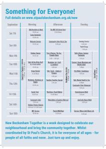 New Beckenham Together, a week-long celebration of the local community, 7-15 September