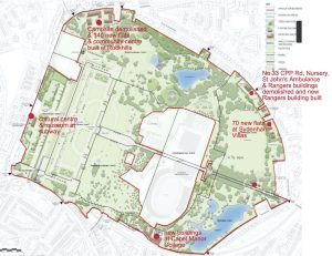 The major project, first submitted last spring, involves the conservation and repair of heritage assets across the Park, landscaping, new paths, the demolition of some existing buildings, the change of use of some land and the construction of new buildings, including two housing developments.