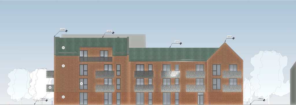 The scheme, by Woolbro Group, involves the demolition of the existing two-storey Victorian building and recent annexes, last used as a care home, replacing it with a large, part-three part-four storey block of 27No. flats.  The new building comprises 12No. one-bedroom and 15No two-bedroom flats with the capacity to accommodate up to 82 people.  Only 19 parking spaces are provided.